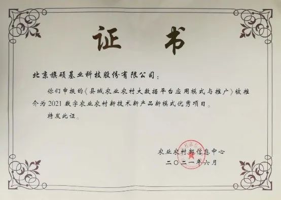 2021年,神州信息申报的“县城农业农村大数据平台应用模式与推广”获评全国优秀项目和优秀案例。该项目通过整合多维度、多层级的县域大数据,通过清洗、关联、集成与分析等服务,形成了统一的数据库和管理平台。集中解决了县域农业数据资源分散、数据标准体系不统一、数据采集困难和信息化管理水平低等问题,有效实现农业增产,农民增收,带动农民生产积极性。