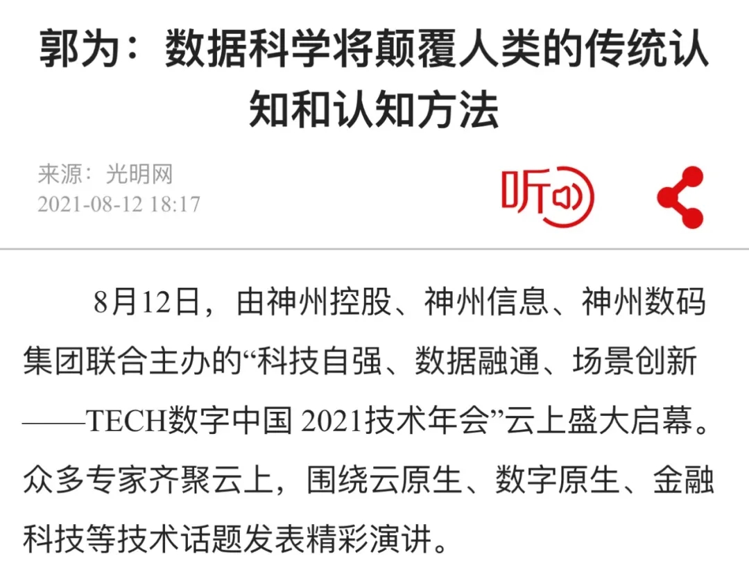 郭为:数据科学将颠覆人类的传统认知和认知方法